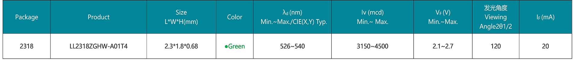 CHIP LED封裝的2318正貼綠光產(chǎn)品高