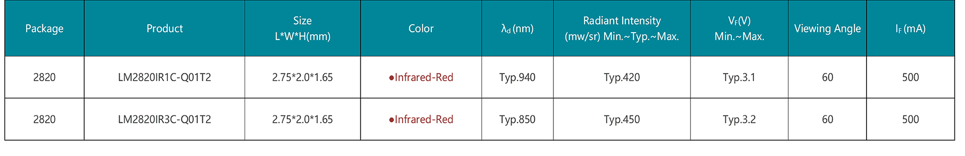 CHIP LED封裝的2820正發(fā)紅外產(chǎn)品